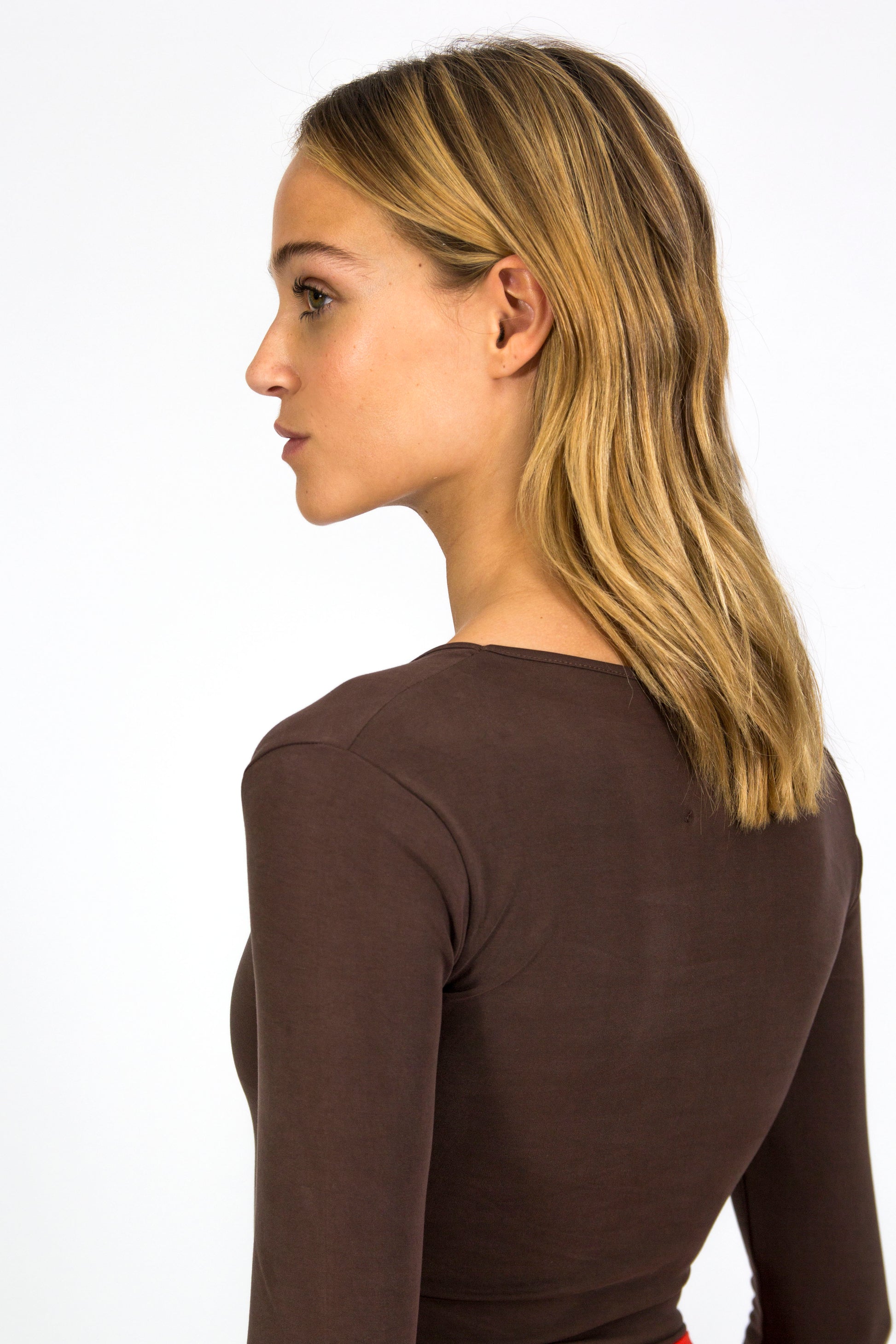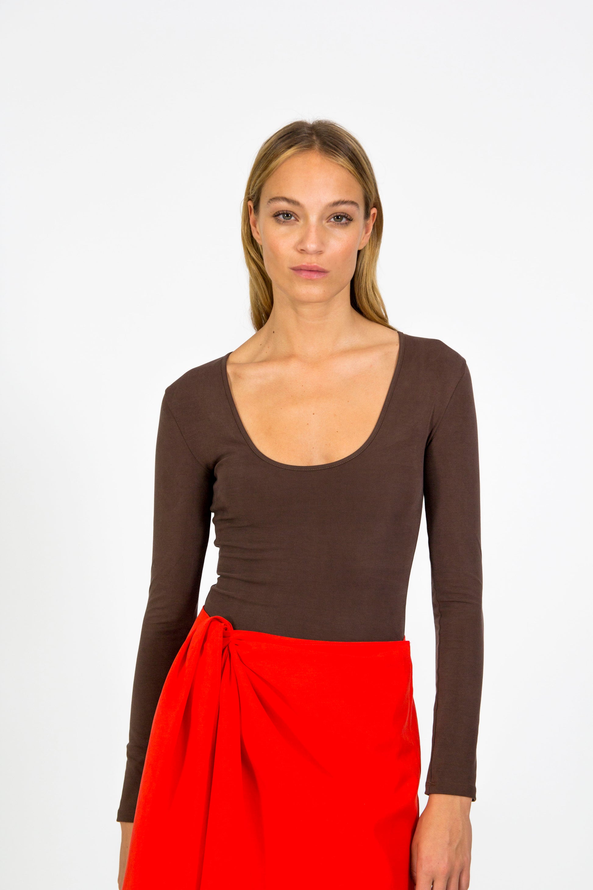 Un imprescindible atemporal amb un toc sofisticat. Aquest body de màniga llarga, fet de teixit suau i elàstic, ofereix un ajust perfecte amb comoditat i estil naturals. El seu escot rodó afegeix elegància, combinant perfectament amb pantalons o faldilles de cintura alta. Acabat amb un tancament amb botons a pressió, està disponible en tons versàtils com el blau, el marró i l'ametlla, un imprescindible per a qualsevol armari càpsula.