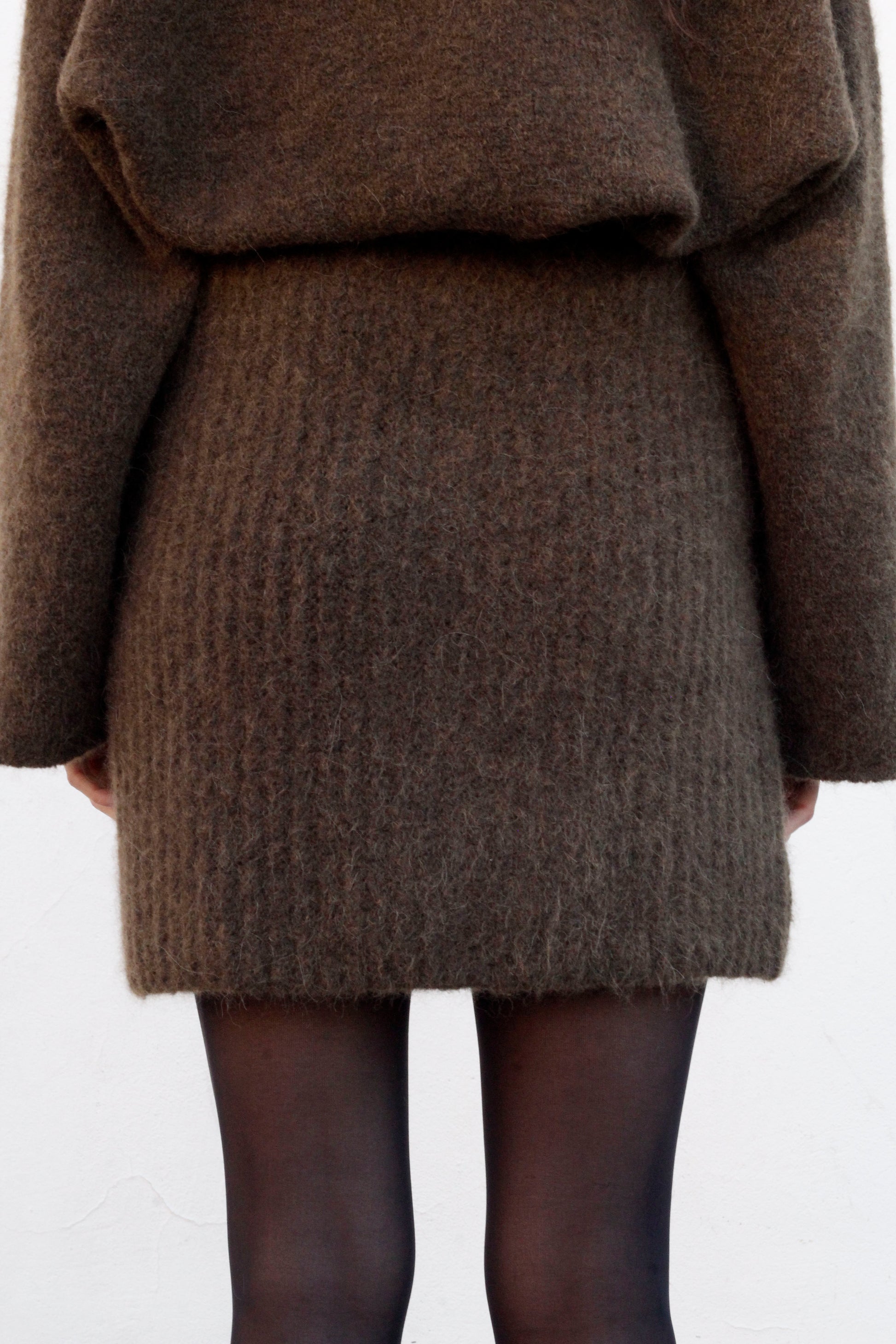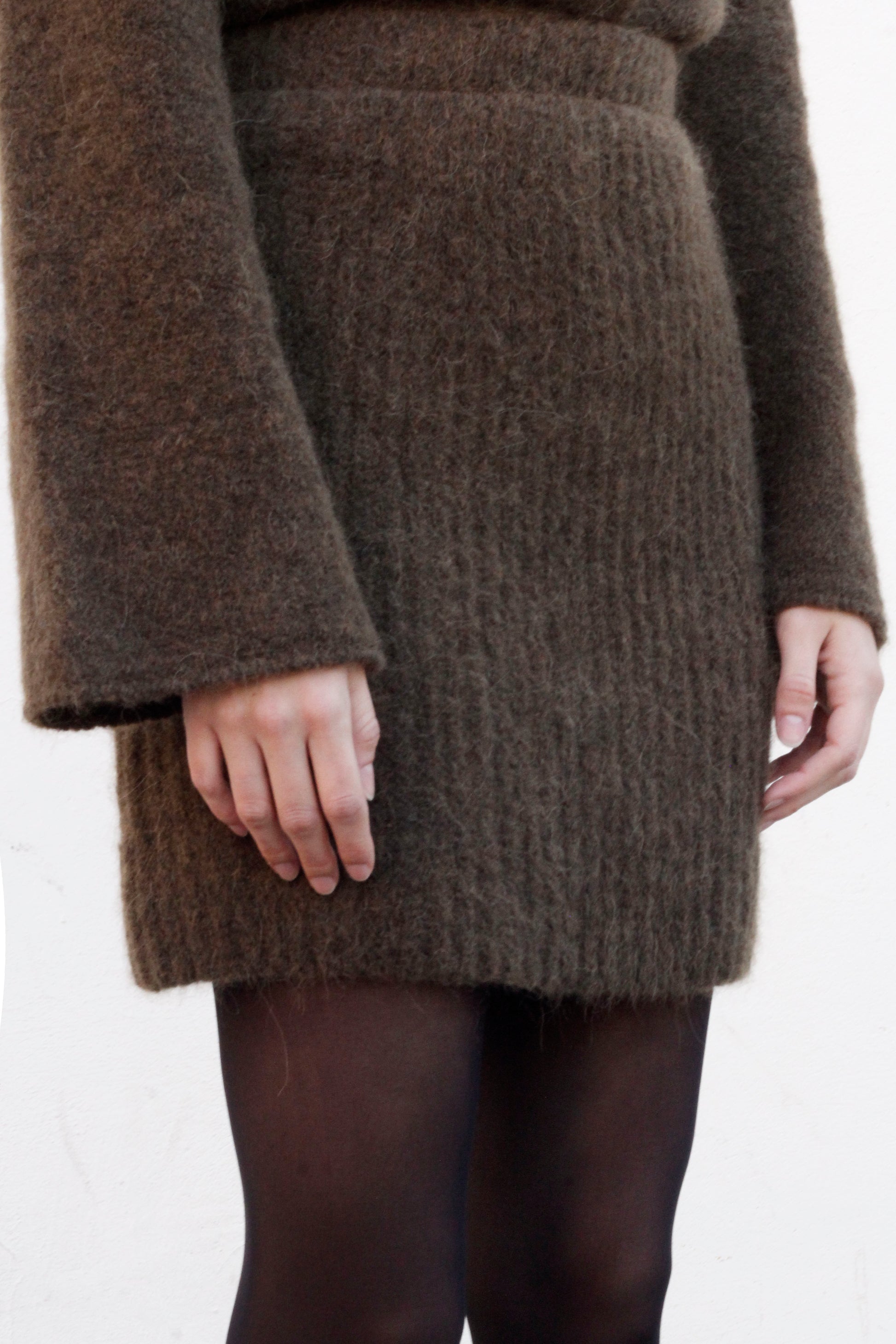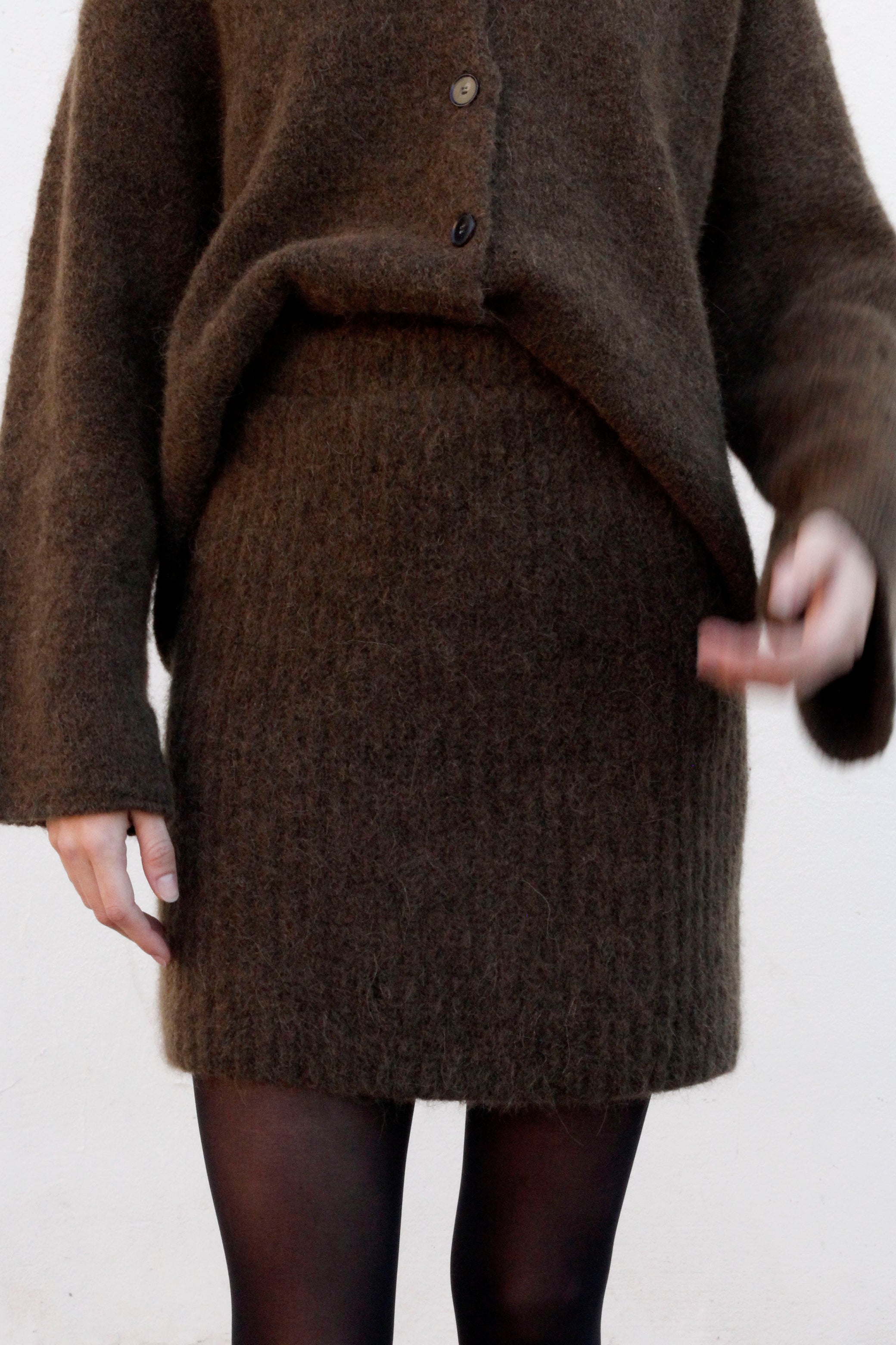 Aquesta minifaldilla suau al tacte combina comoditat i estructura en una silueta compacta. La seva confecció de punt fi s'adapta suaument al cos, oferint calidesa i flexibilitat sense sacrificar la forma. La longitud afegeix un contrast lúdic amb el material texturat, mentre que els tons rosa i verd fosc aporten riquesa i profunditat subtil. Ideal per combinar amb mitges o peces de punt grans, és una peça versàtil per a la transició i per a la vestimenta d'hivern.