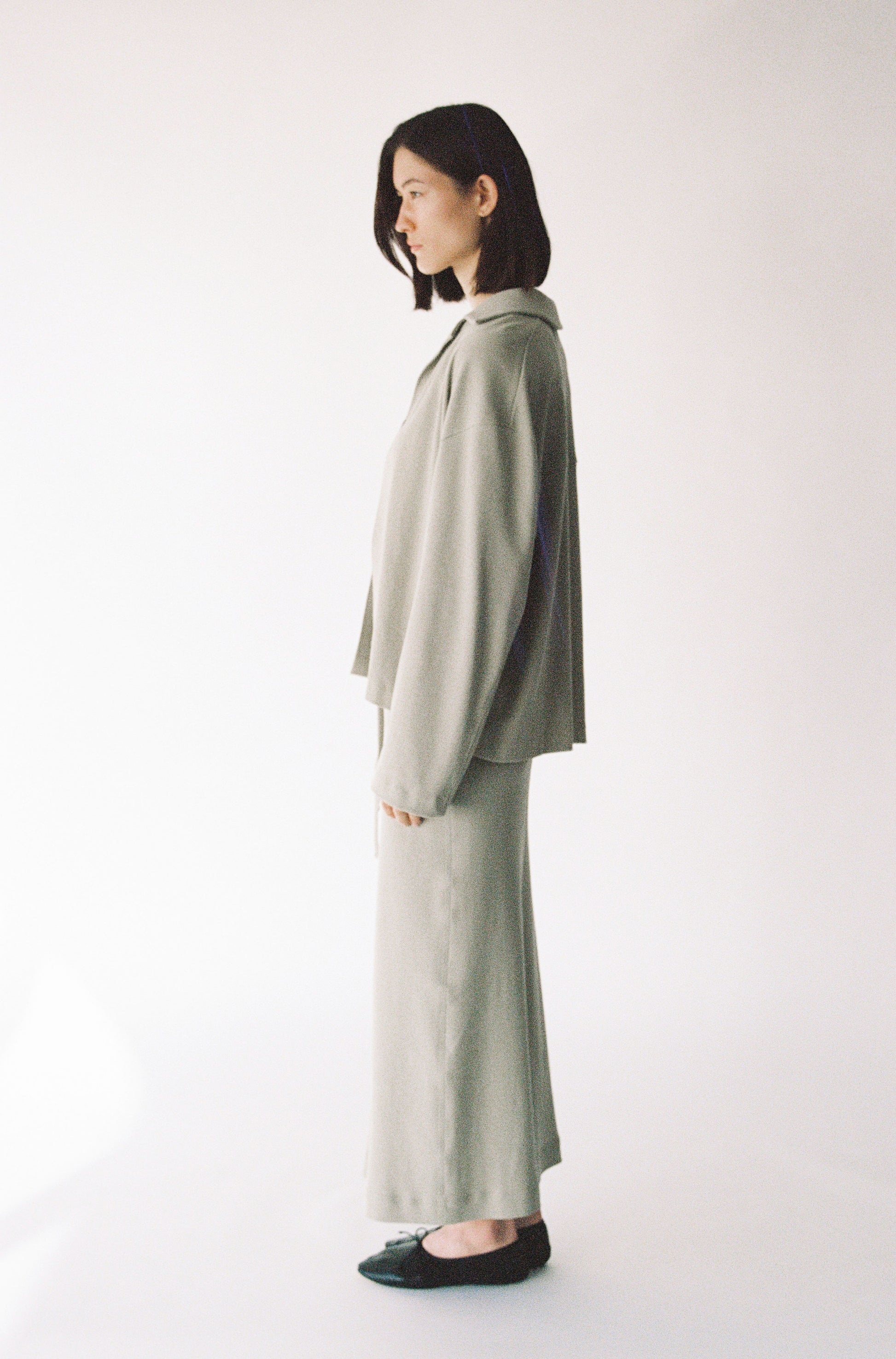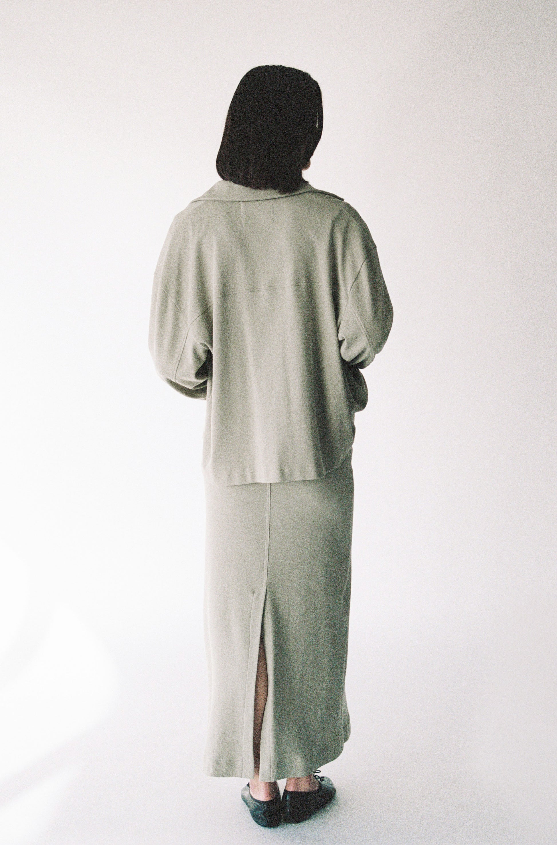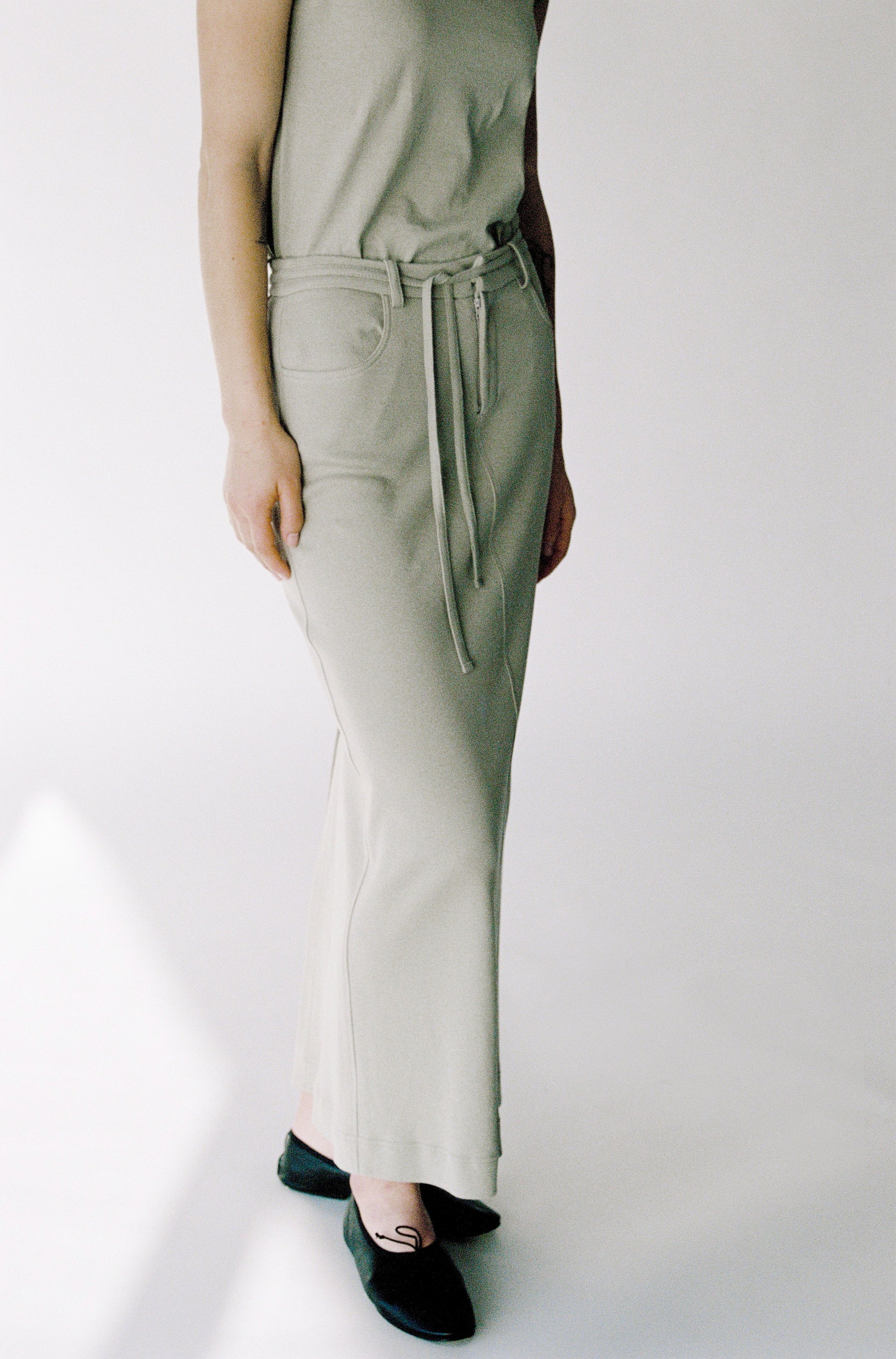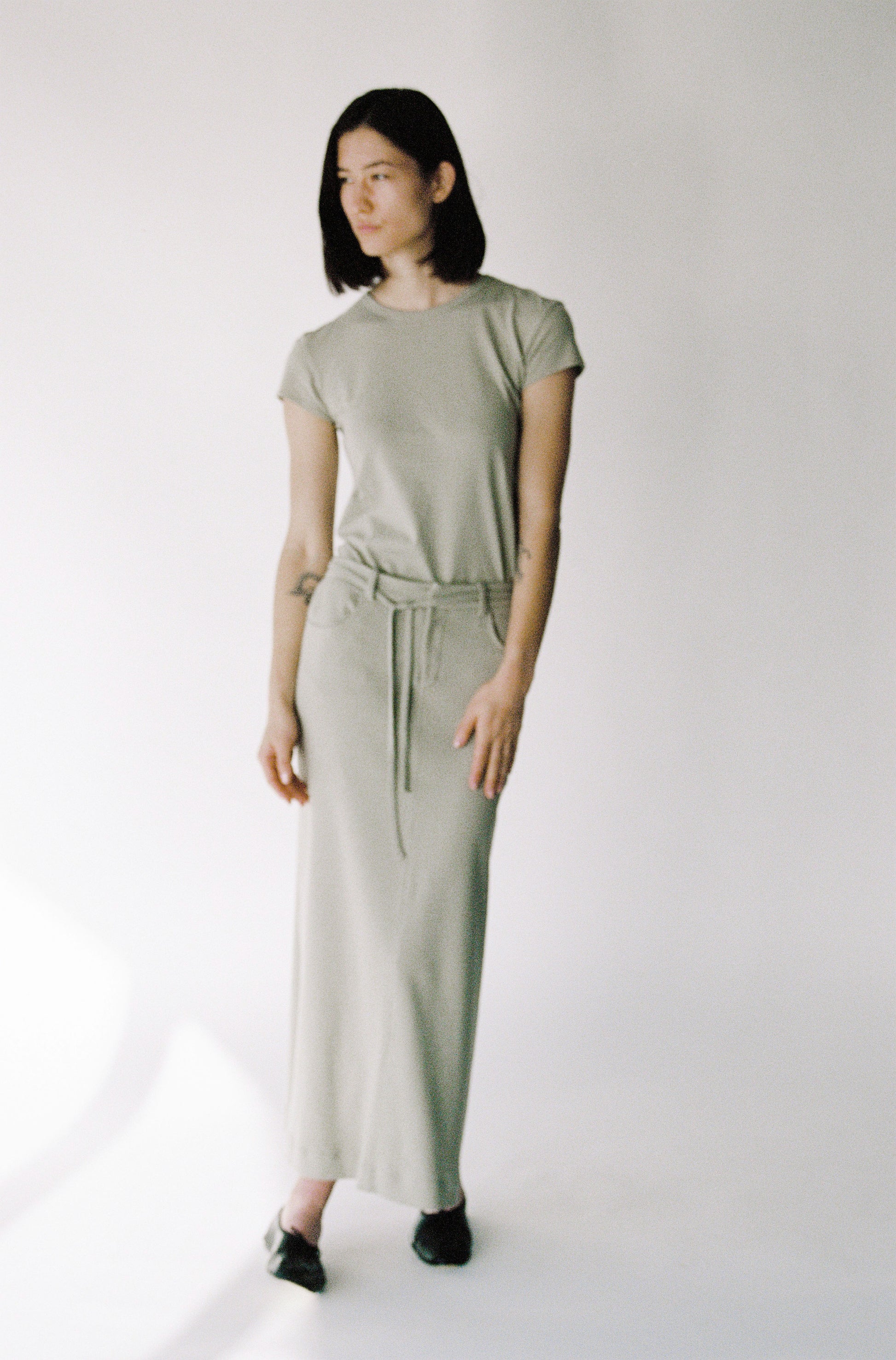 Designed to complement the matching jacket and t-shirt, this low-waisted skirt is made from 100% recycled cotton. Featuring adjustable ties, functional pockets, and a back slit for ease of movement, it’s a perfect balance of practicality and sophistication.