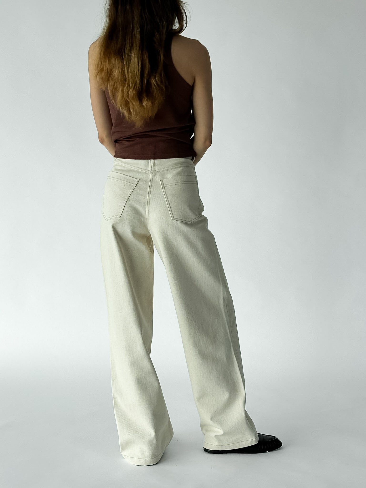 Elevate your ensemble with our Ida Trousers, the epitome of effortless style. Crafted from 100% BCI cotton, the trousers are cut to a relaxed straight-leg fit, ensuring both comfort and sustainability. The Ida Trousers feature front and back pockets, traditional belt loops, and a central metal zip and button fastening. Brown stitching adds an extra layer of detail.