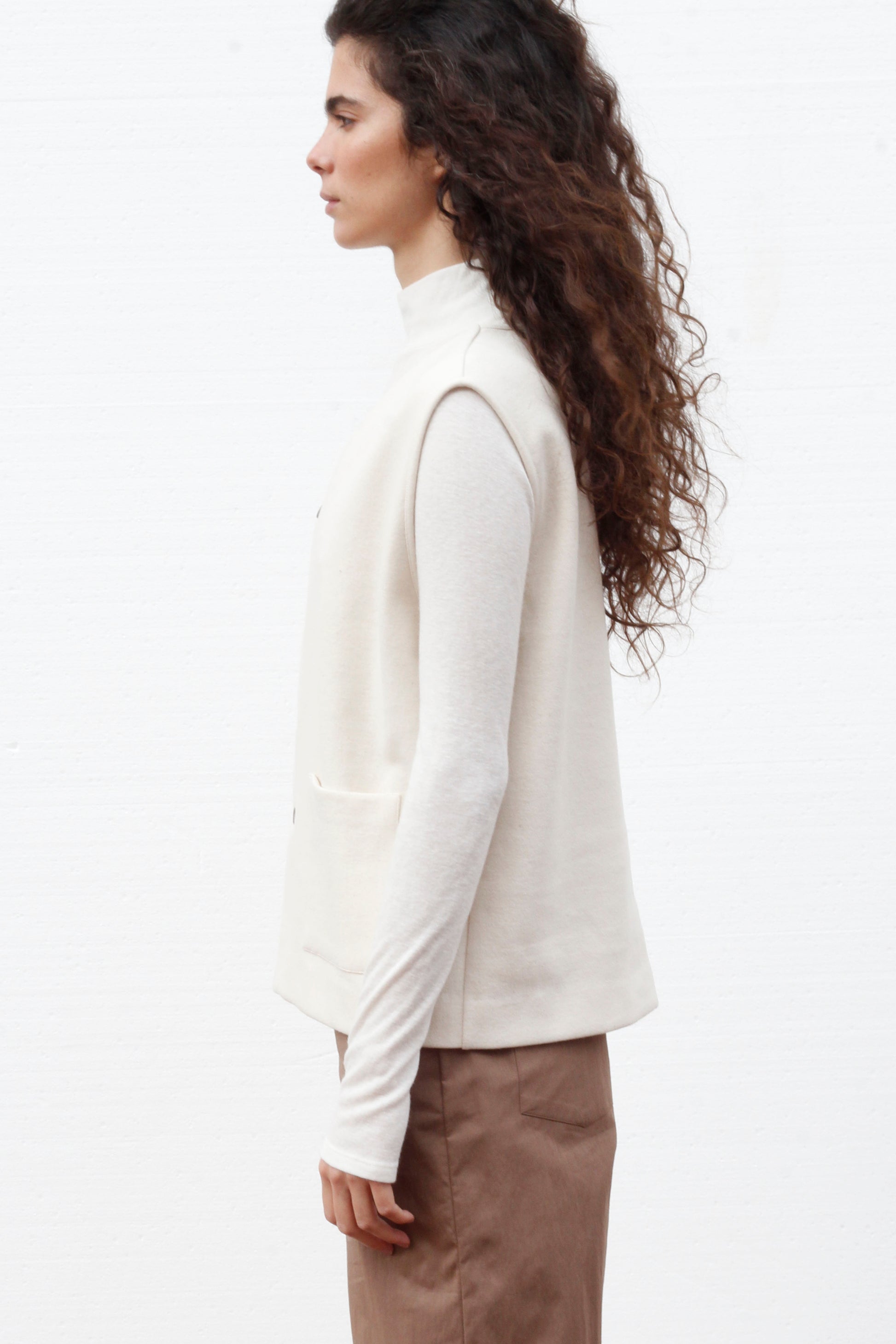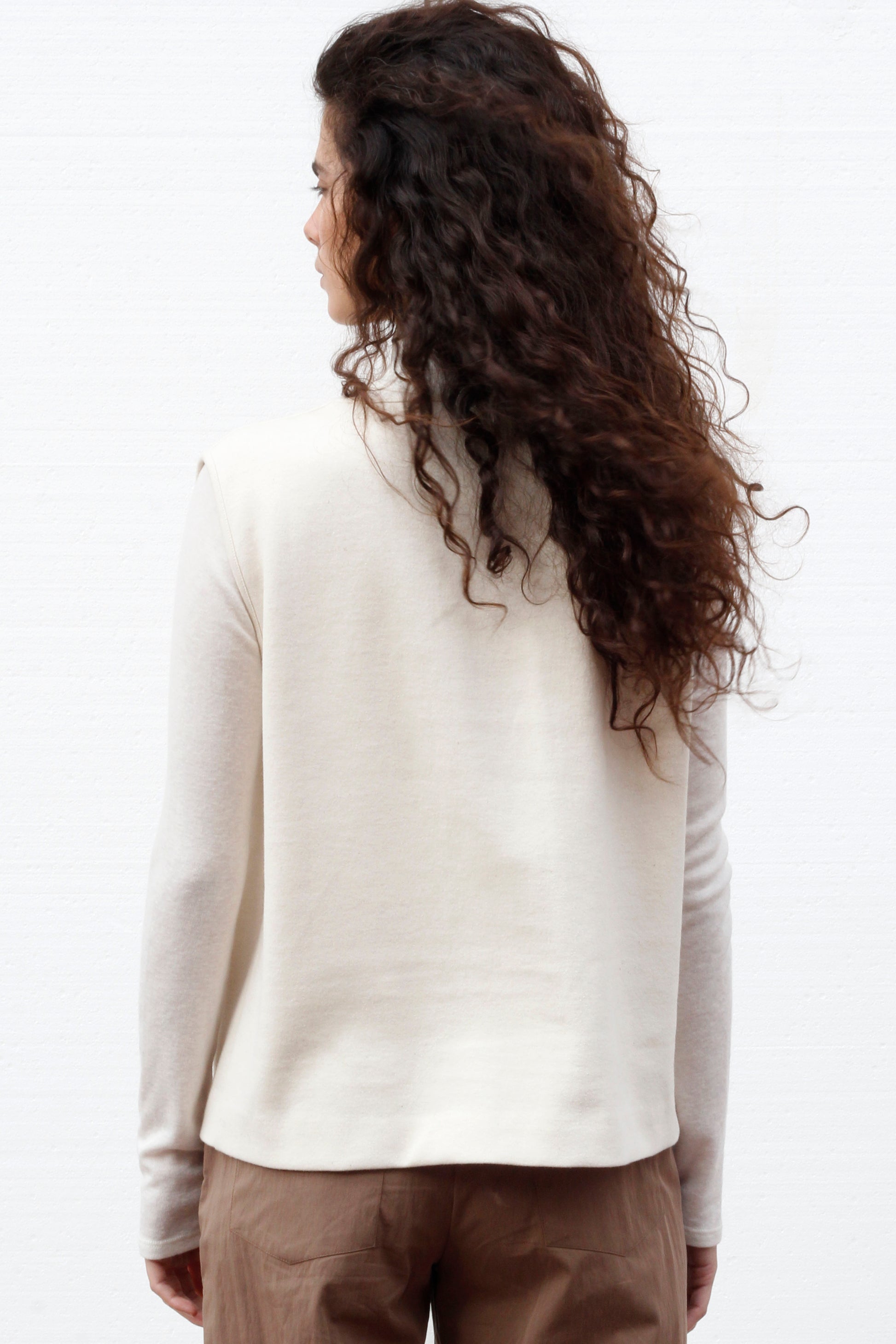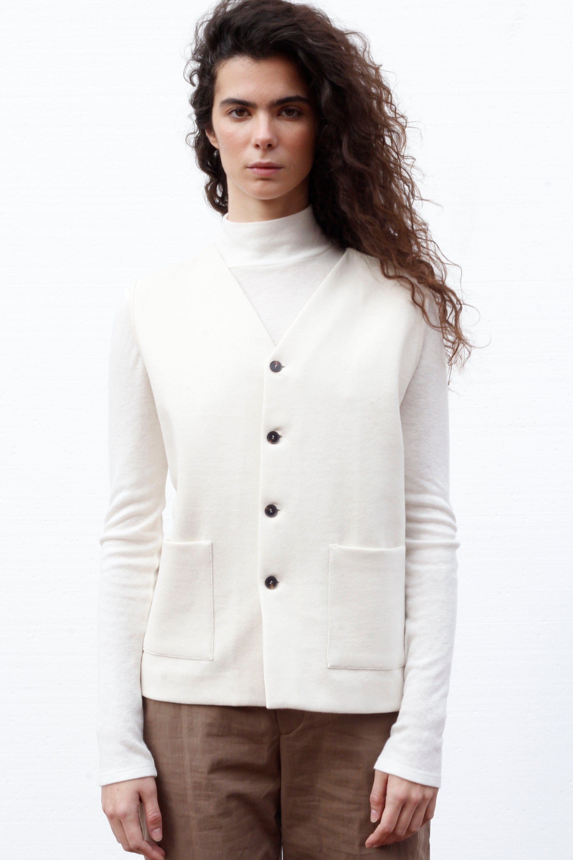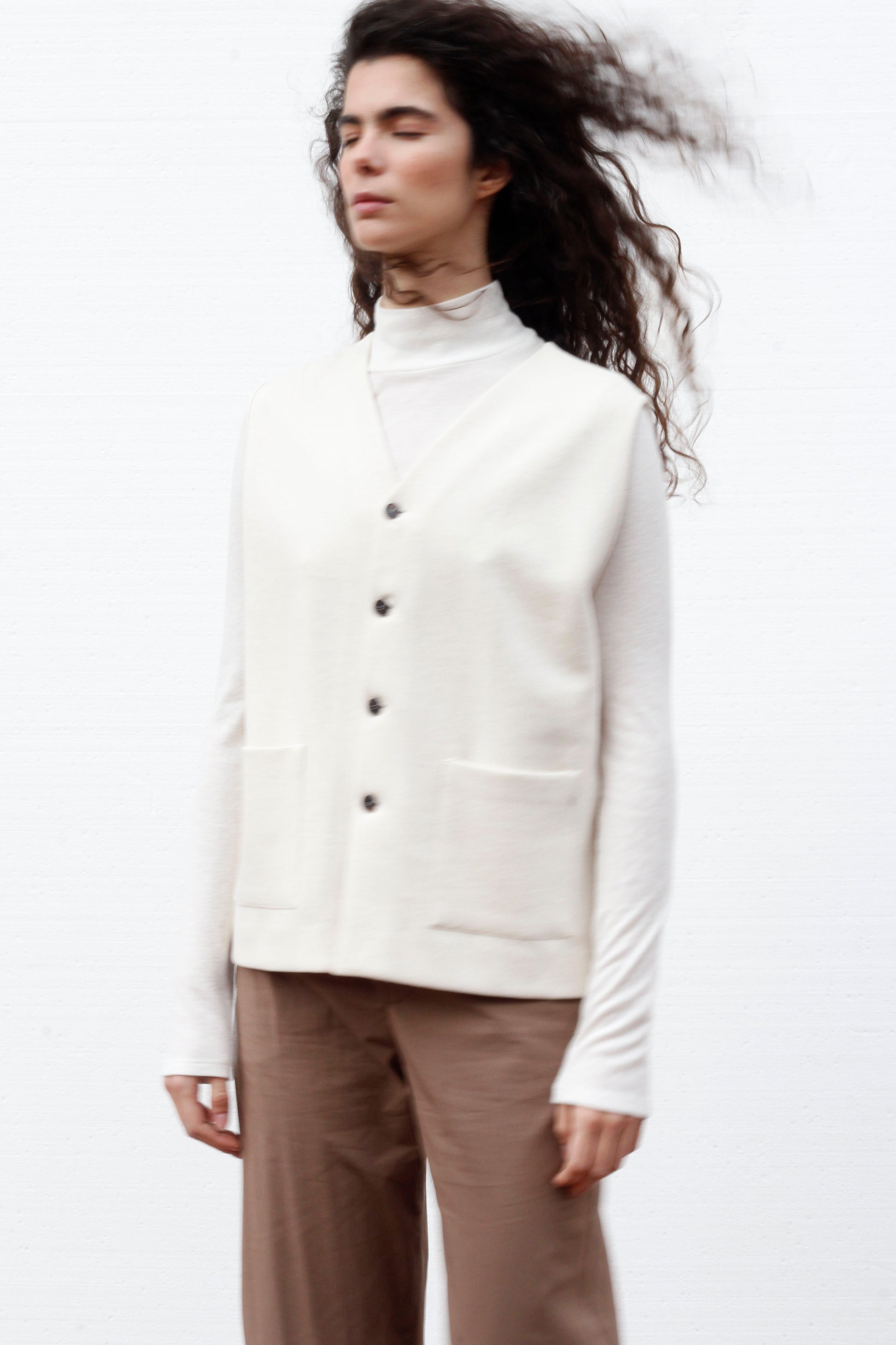 A minimalist knitted vest crafted for layering through the colder seasons. Made from a warm, breathable blend of organic cotton and wool, it features a clean silhouette that pairs effortlessly with shirts, dresses, or under outerwear.