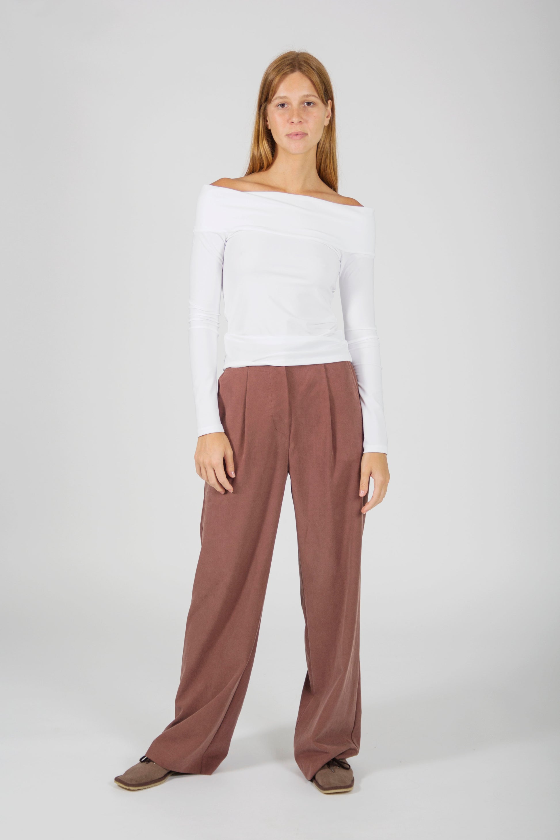 The Fujin Top is an off-the-shoulder, long-sleeve piece that exudes effortless style and comfort. The slightly sheer fabric offers a stretchy and luxurious feel, ensuring a beautiful fit. Crafted from a blend of modal and recycled elastane.