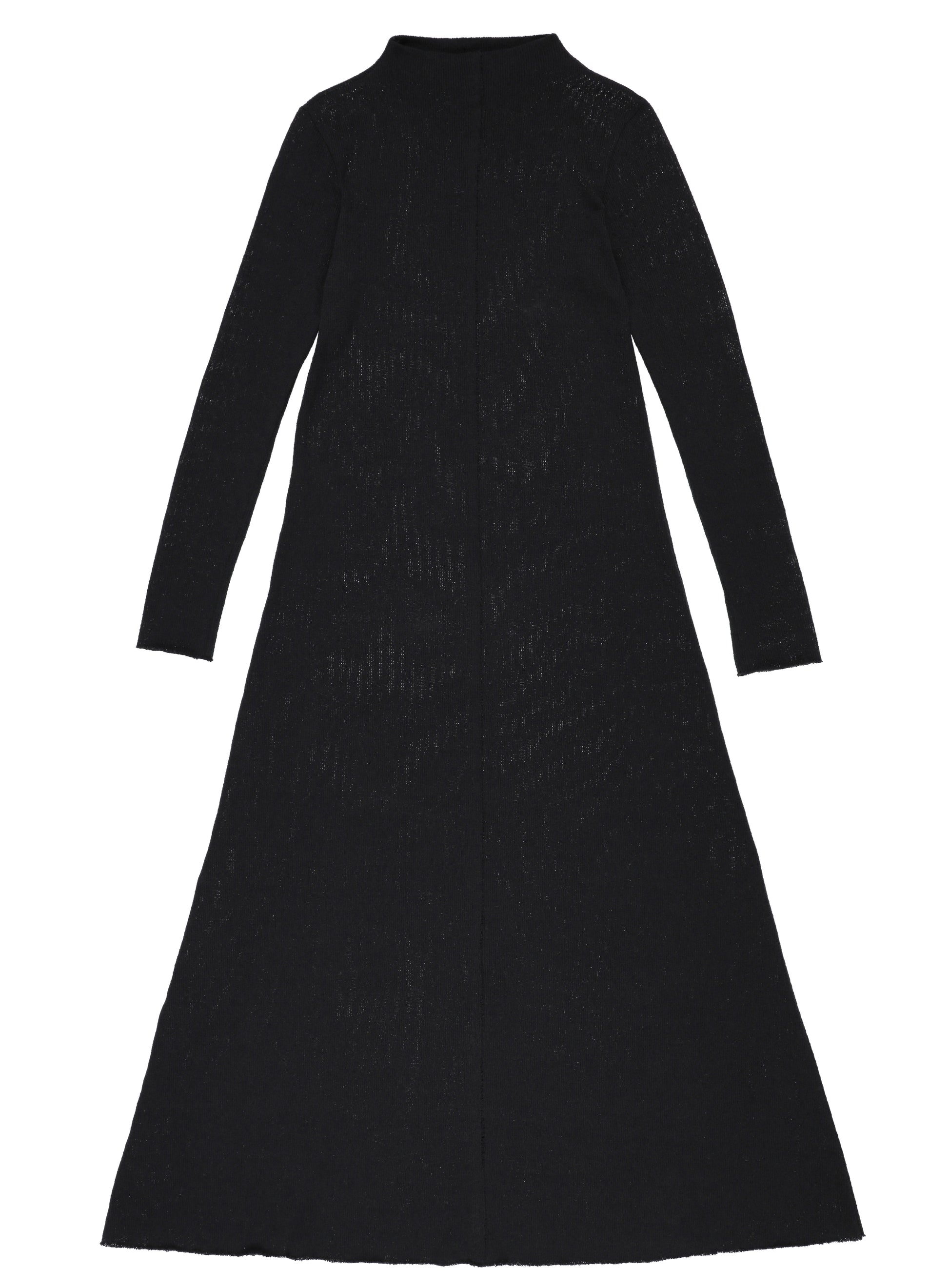 This long knitted dress, crafted from 96% organic cotton, offers both sustainability and simplicity. Designed with a regular fit, it provides comfort for any occasion. The dress features a half-high collar, adding a sophisticated touch to its classic design. The soft, breathable organic cotton ensures all-day comfort, while the intricate knitted patterns bring subtle texture. With its long sleeves and flowing silhouette, this dress is a versatile addition to any wardrobe.