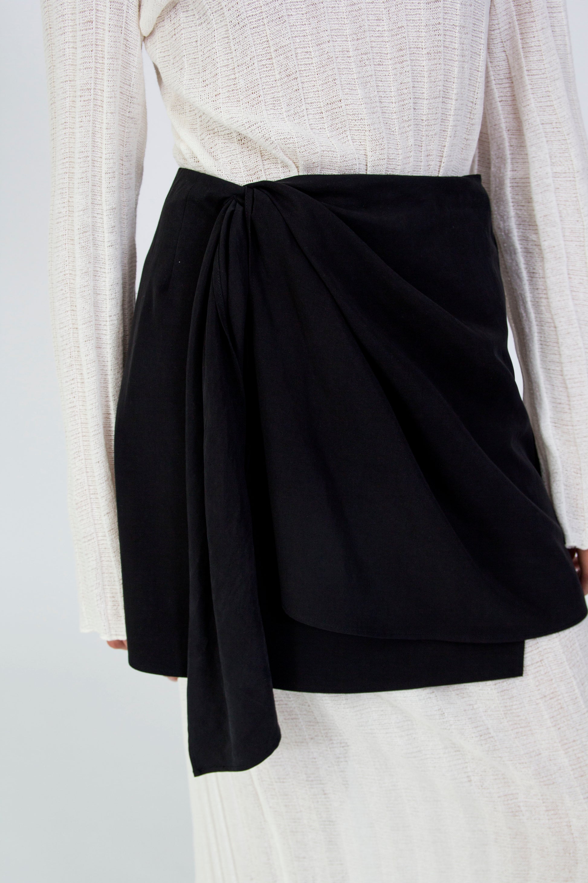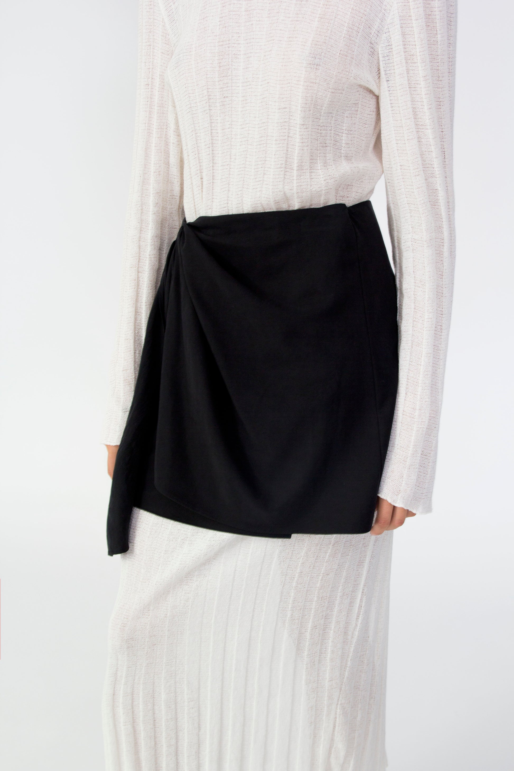 This mini skirt combines bold style with playful details. Available in vibrant red and classic black, it features an inner button closure with a tie. The perfect piece to add a pop of color to your wardrobe, offering both elegance and a touch of fun.